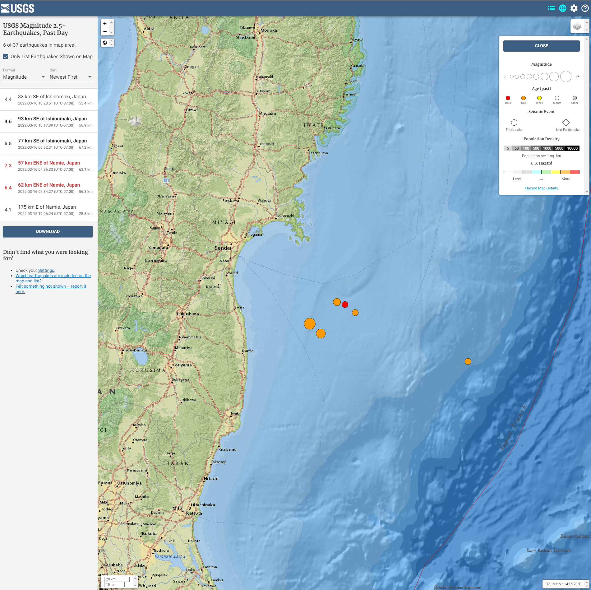 M 6.5 - 62 km ENE of..> 2022-03-16 23:37 -