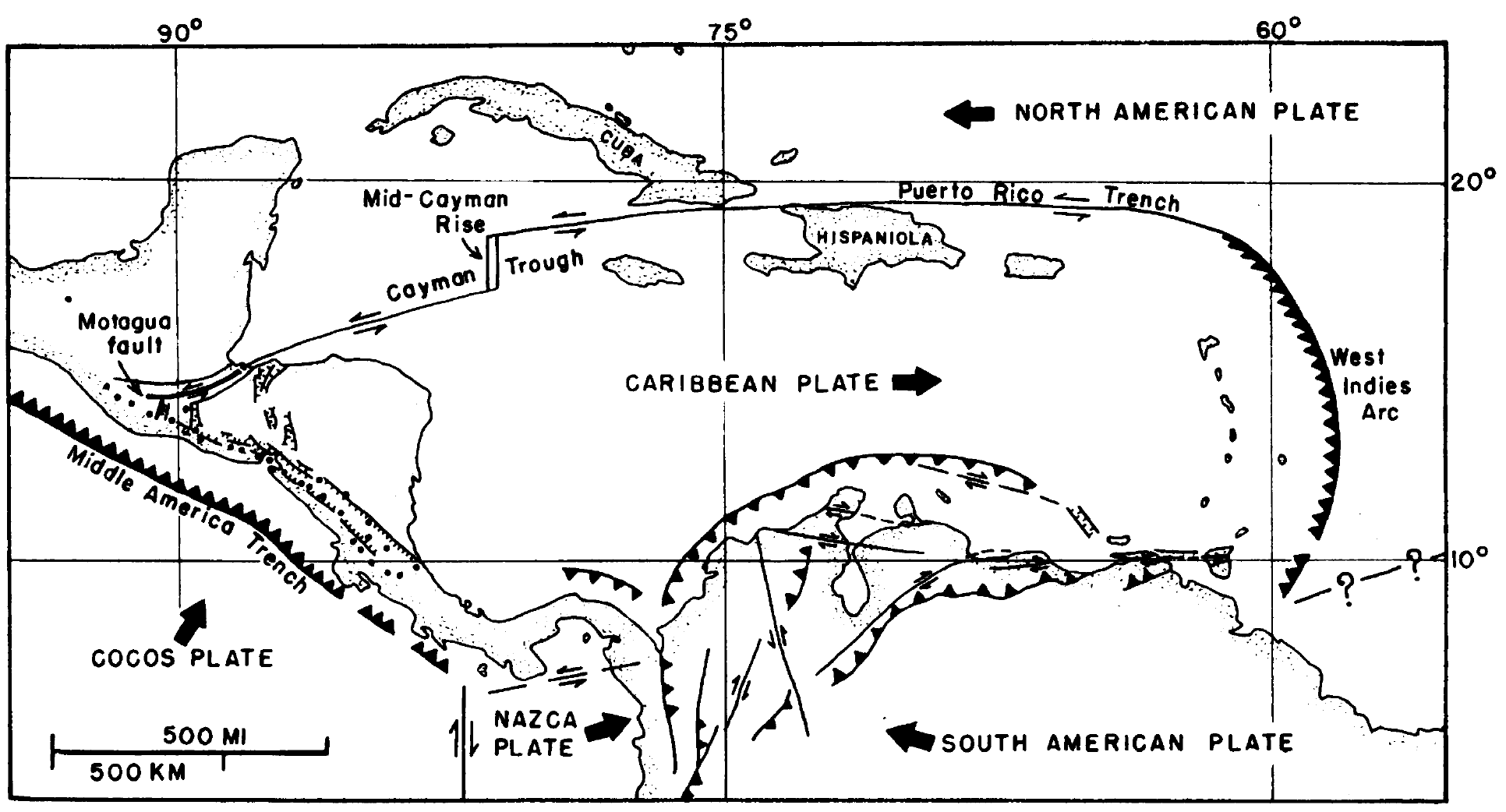 - The Motagua and related faults are connected to strike-slip/transform plate boundary faults to the east.