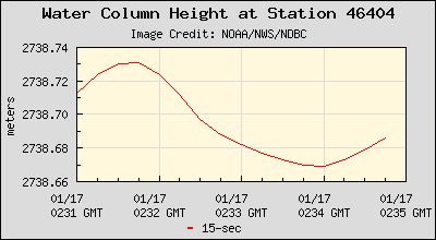 As of 0231:30, the initial water column height is 2738.80 Meters deep (8985.56 feet). Two minutes and thirty seconds later, that same water column height had dropped to 2738.66 Meters deep (8985.10 feet). Where did the four inches of water disappear to? Answer: The earth sunk; and continued to sink for the next several HOURS. As you can see from the second chart above, from 0230 GMT to 0600 GMT, the ocean continued to sink to 2737.7 meters deep (8981.95 feet). The buoy is too far away from shore to be affected by high/low tide, so where did the four feet of ocean water disappear to?