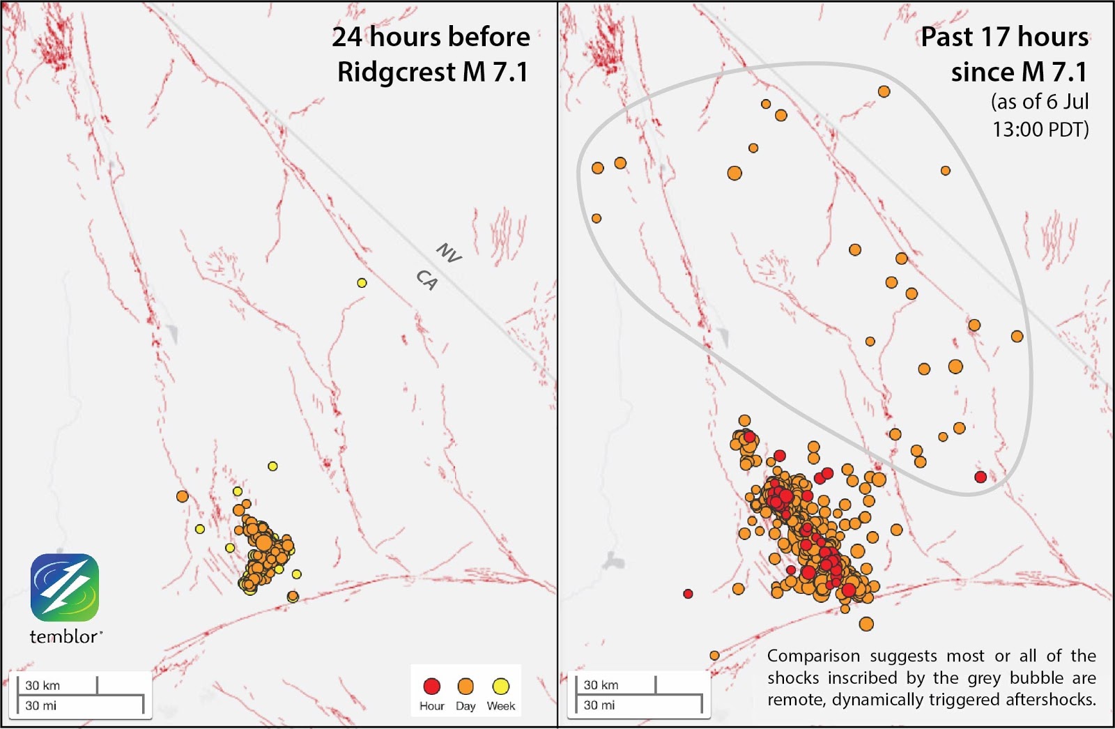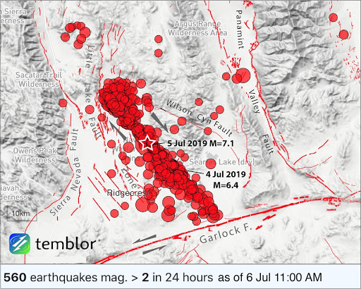Citation: Ross S. Stein, Chris Rollins, Volkan Sevilgen, and Tiegan Hobbs, (2019), M 7.1 SoCal earthquake triggers aftershocks up to 100 mi away: What’s next?, Temblor, http://doi.org/10.32858/temblor.038